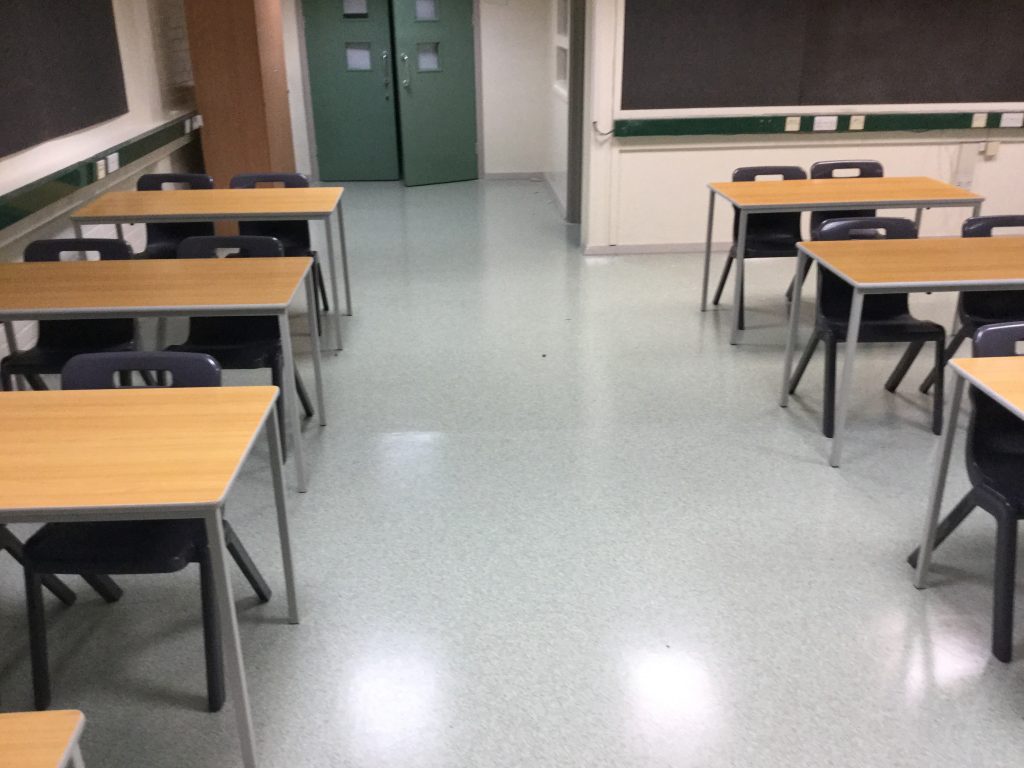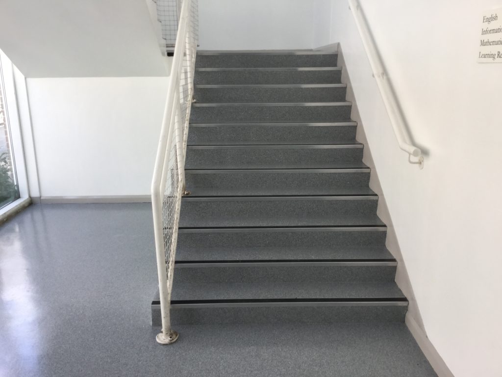 We fitted the Polyflor flooring throughout the classroom and also added aluminium nosings to the staircase too.