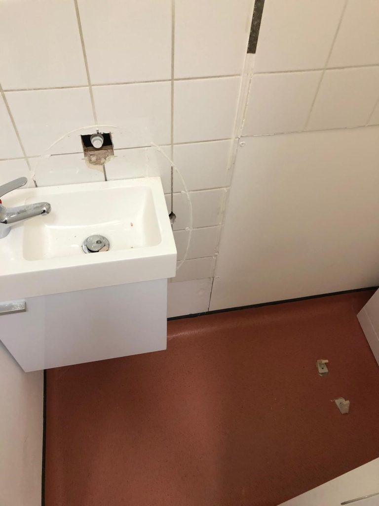We supplied and fitted contact vinyl cap and cove to toilet areas.