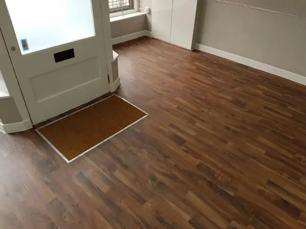 We firstly uplifted and disposed of the existing vinyl before preparing the subfloor with a fibre reinforced latex. We then laid the vinyl and welded the joints. A new coir matting was fitted to the front door and then the perimeter was sealed with a mastic bead.